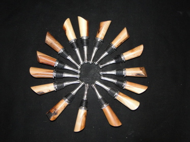 Die Flaschenverschlüsse passen auf sämtliche Flaschenhälse durch den konischen Gummi. Wir verwenden ausschließlich dekorative Hölzer, wie Obstbaumhölzer oder Hölzer mit schöner Zeichnung, damit der Verschluss immer ein Hingucker ist. Unsere Hölzer werden alle geölt. Dadurch, dass der Verschluss aus Edelstahl ist (und nicht wie die meisten aus Chrom!), genügt er höchsten Ansprüchen. Bei größeren Mengen( z. B. Weihnachtsgeschenke von Firmen) bitte langfristig vorbestellen. Preis: 15.-- € incl. MwSt. |